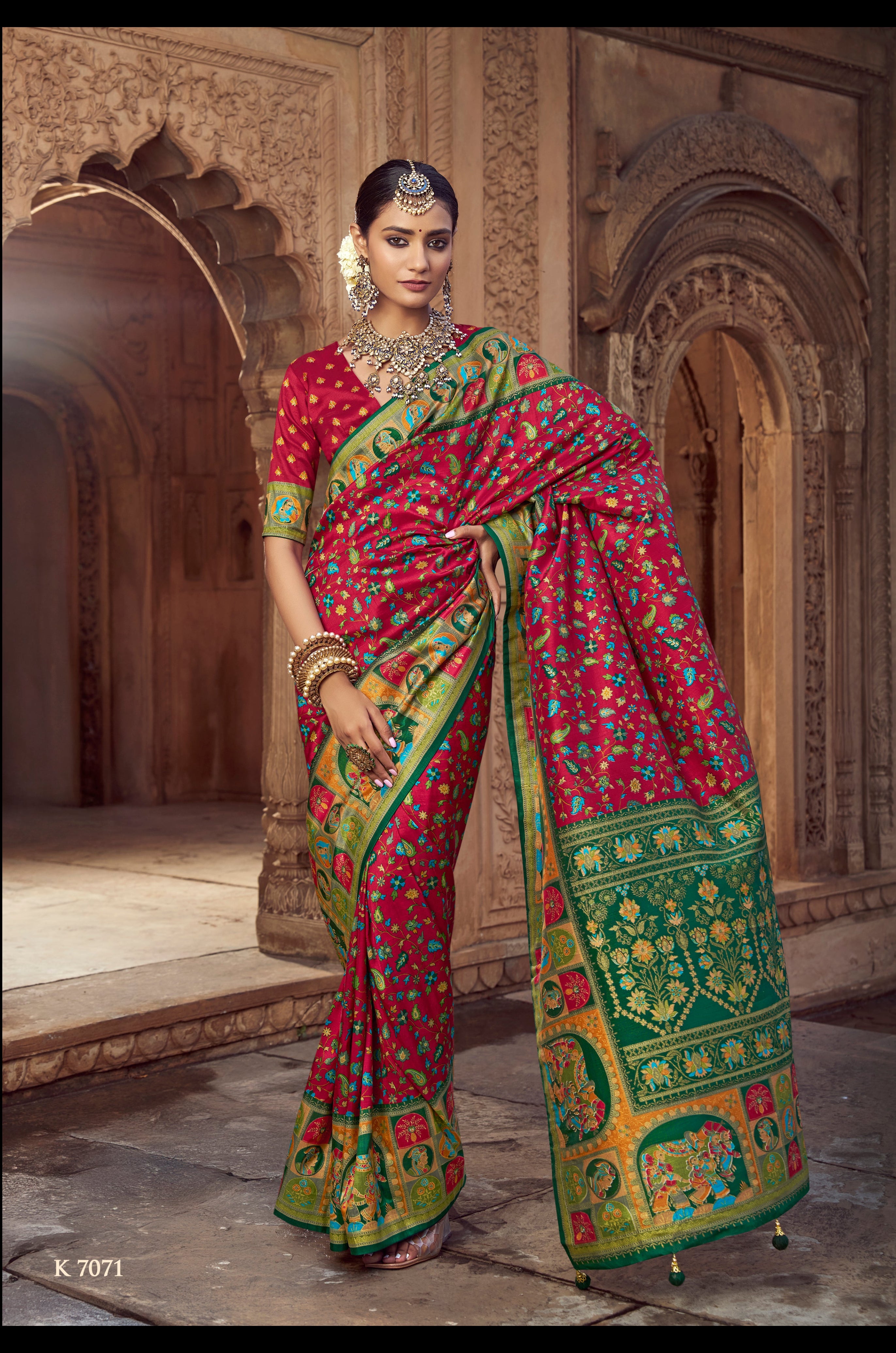 Saree Fabric : High Quality Super 8001 P.V Silk With H.B. Pashmina inspired Luxury Print With Glory Finish