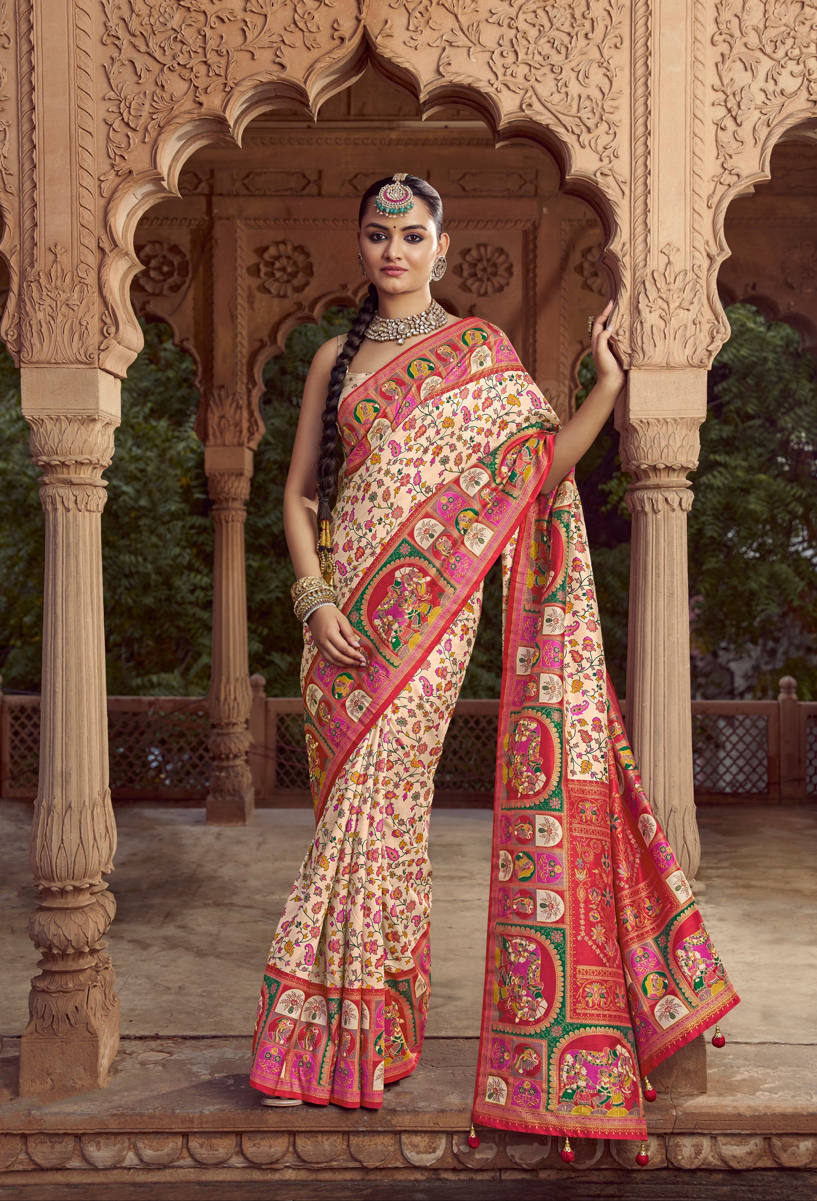 Saree Fabric : High Quality Super 8001 P.V Silk With H.B. Pashmina inspired Luxury Print With Glory Finish