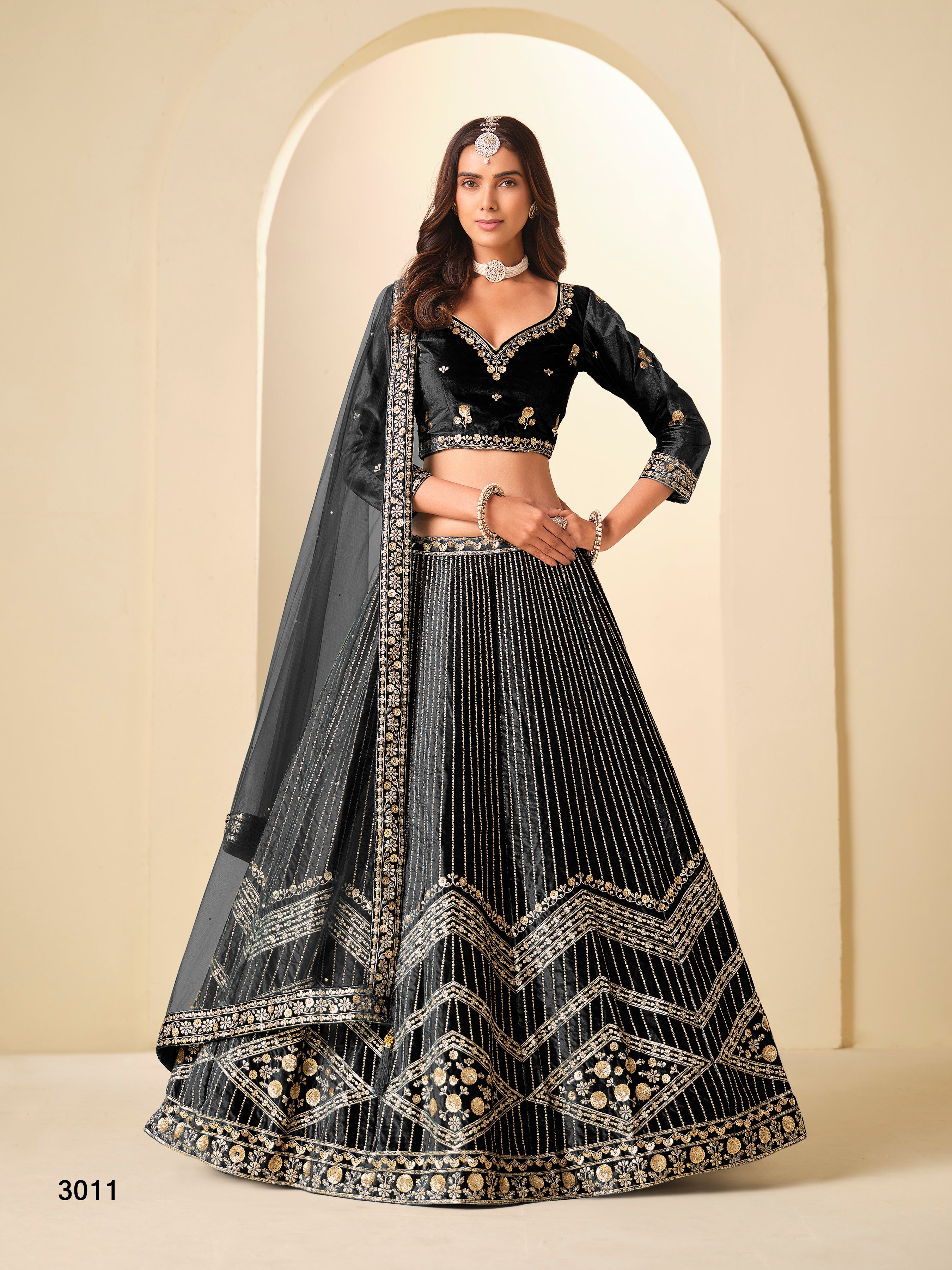 black colour ice velvet lehenga choli...new collection of 2026