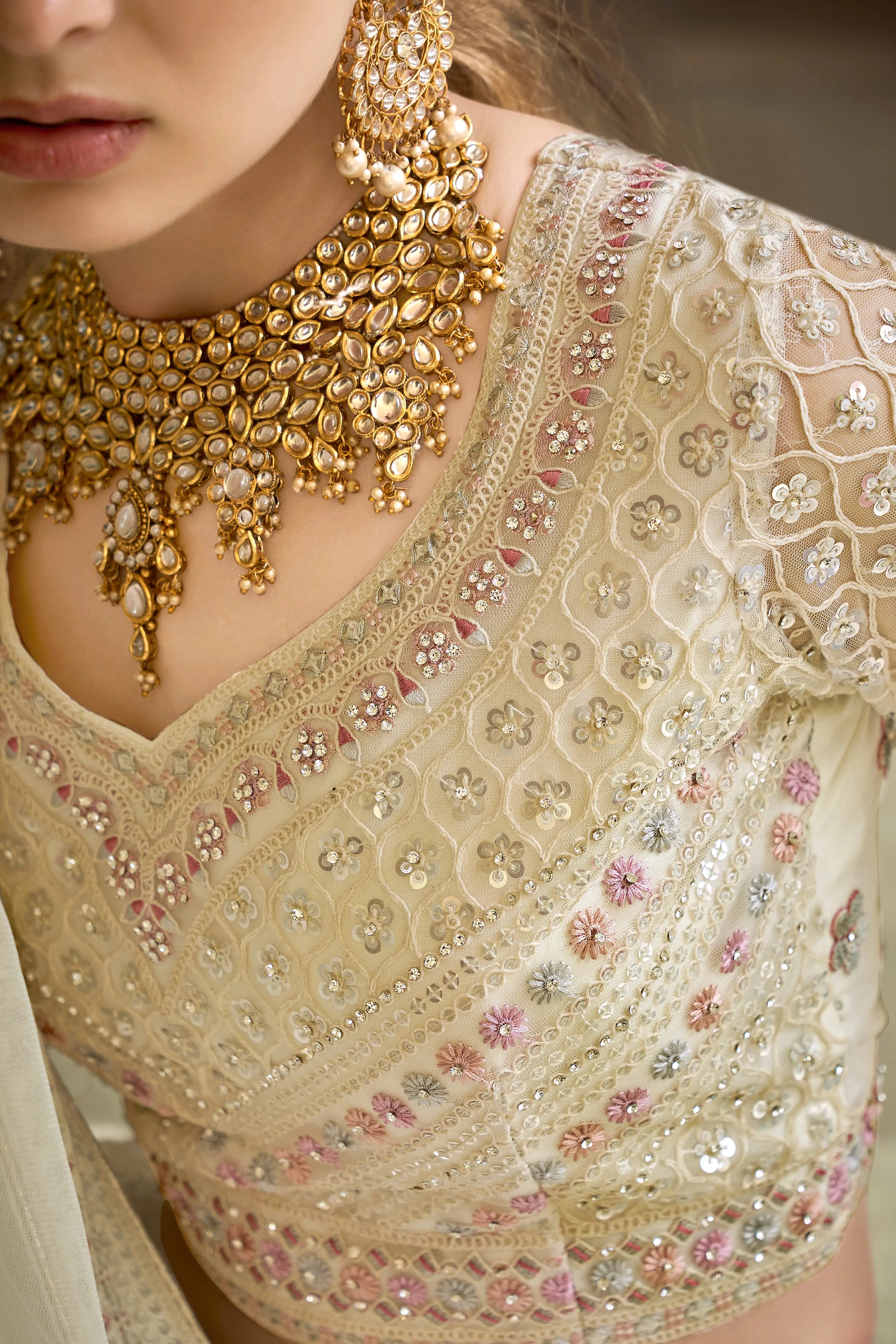 ➡️ 6 mtr fair beige colour primium reception choli collection..